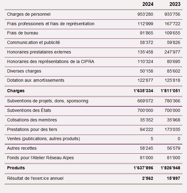 Les comptes annuels de CIPRA Lab sont disponibles en ligne sur: www.cipra.org/qui-est-cipra-international/cipra-international-lab